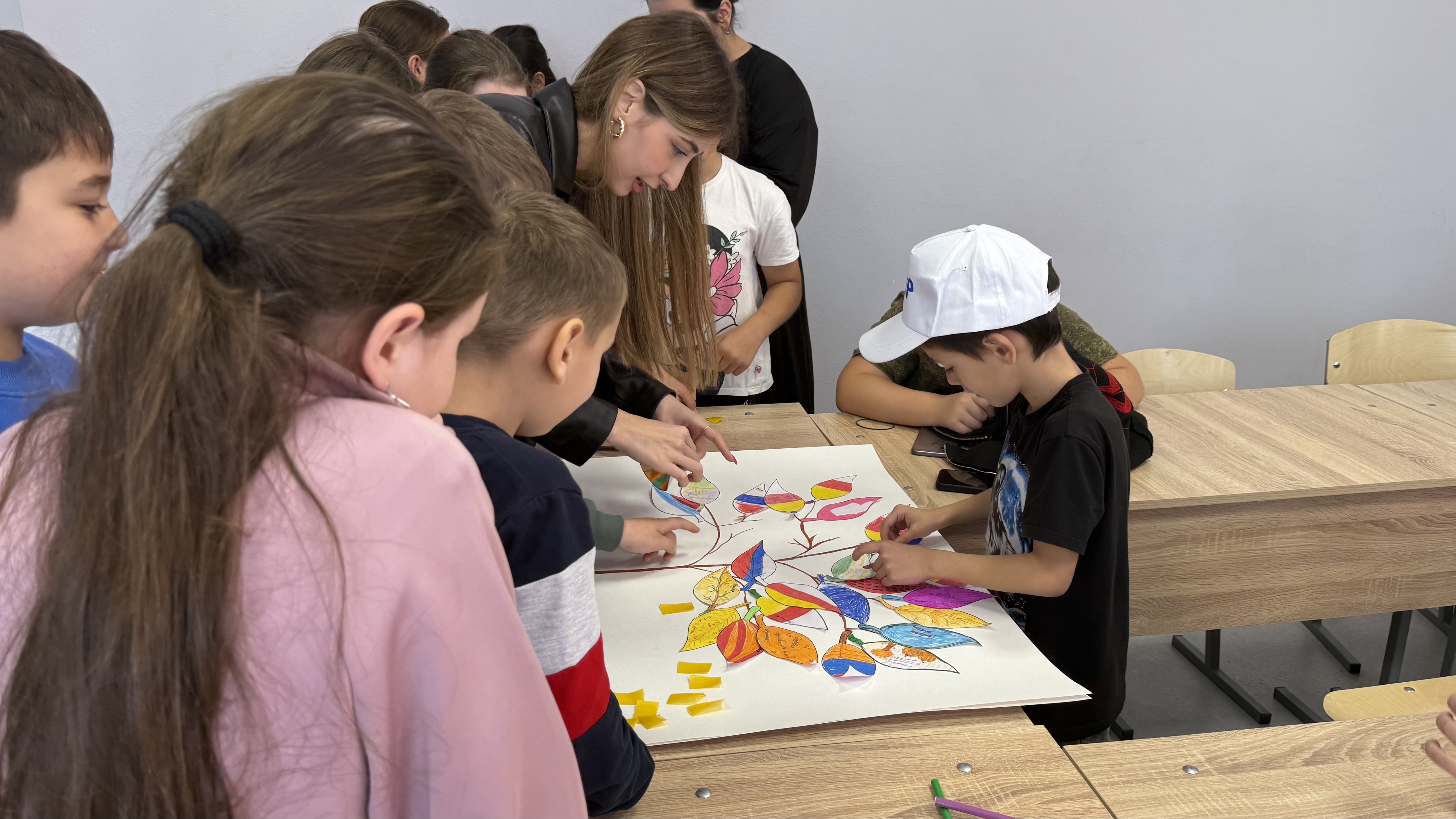 В ходе акции каждый ребенок получил возможность творчески выразить свои мысли о дружбе и единстве, украсив бумажный листочек. Все эти индивидуальные листочки были собраны в одно яркое и красочное «Дерево дружбы народов», ставшее зримым воплощением идеи общности и взаимопонимания.